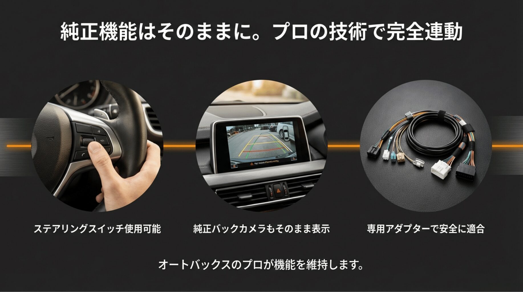 純正のバックカメラやステアリングスイッチの連動