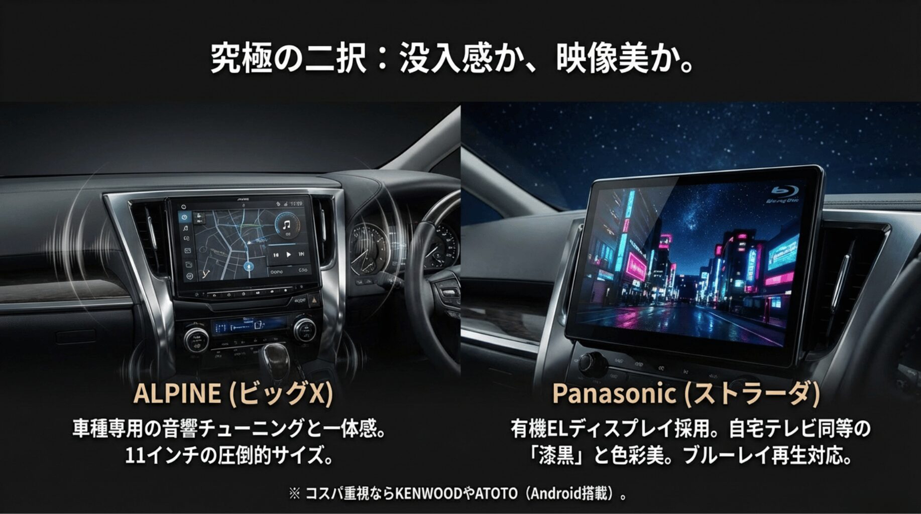 - アルパインやパナソニックなど、主要メーカーごとの画質や音響、使い勝手の徹底比較