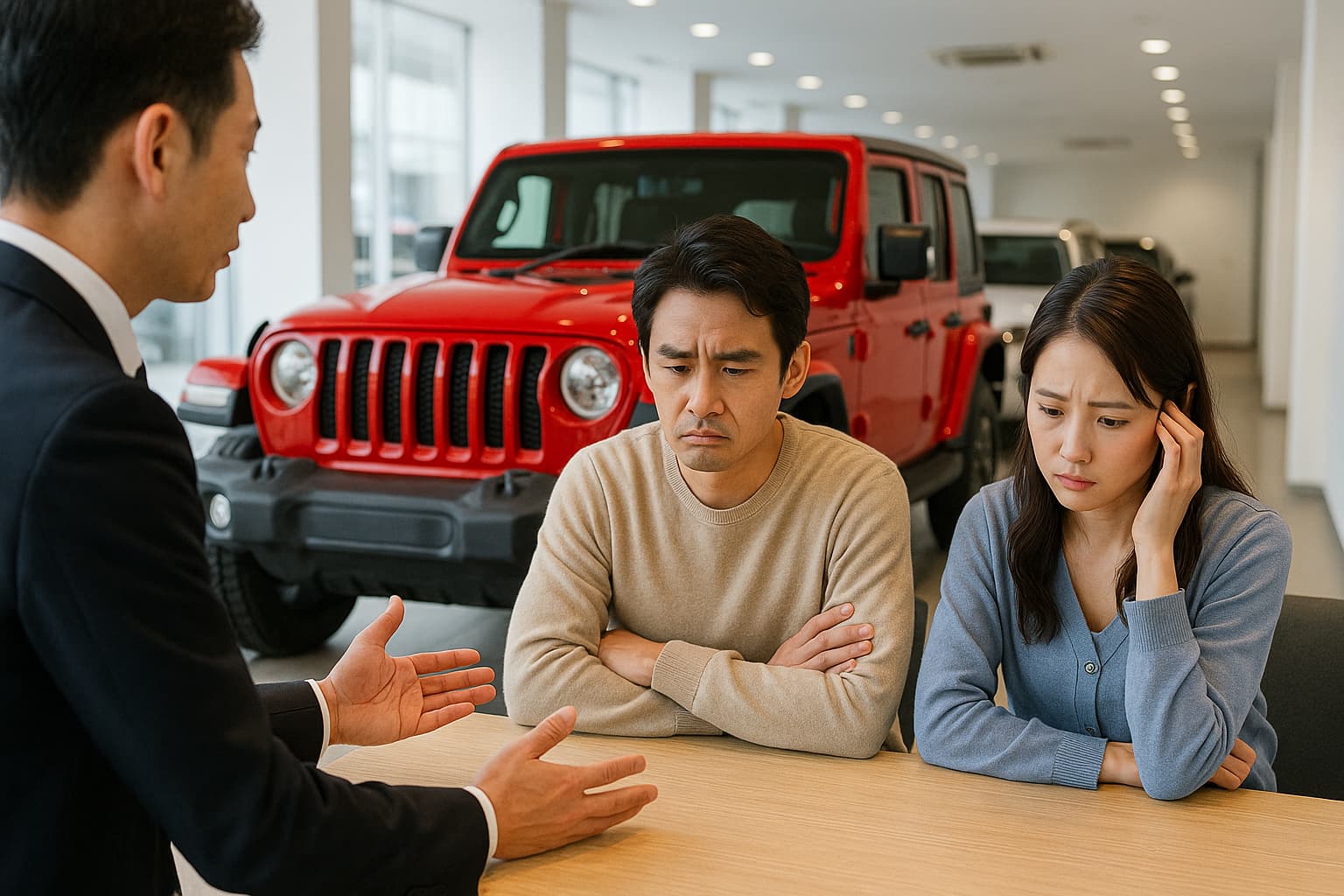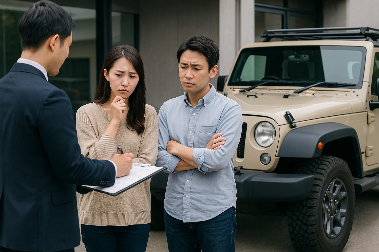 「審査が厳しいか緩いか」は一概には言えませんが、高額な車両(特にラングラーやグランドチェロキー)になれば、それ相応の支払い能力が求められるのは当然です。審査結果によっては、連帯保証人を求められたり、残念ながら契約ができない(審査落ち)場合もあります。