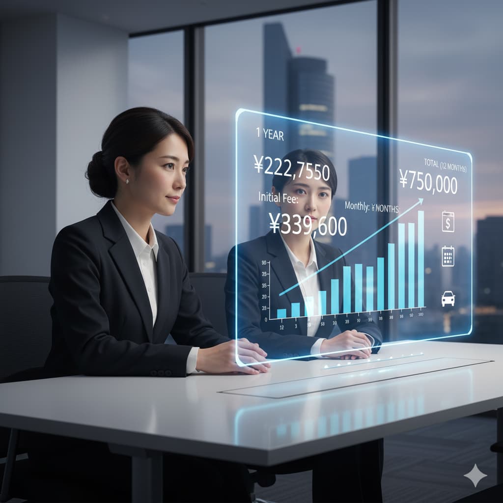 このシミュレーションから分かる通り、12ヶ月間利用した場合の総支払額は、約74万円から78万円となります。月額料金(39,600円)だけを見ると安価に感じられますが、最初に支払う申込金(222,750円)が総額に含まれるため、1年利用の実質的な月額コストは約61,400円~64,700円(総額÷12ヶ月、未払いリース料含む)と考えることができます。