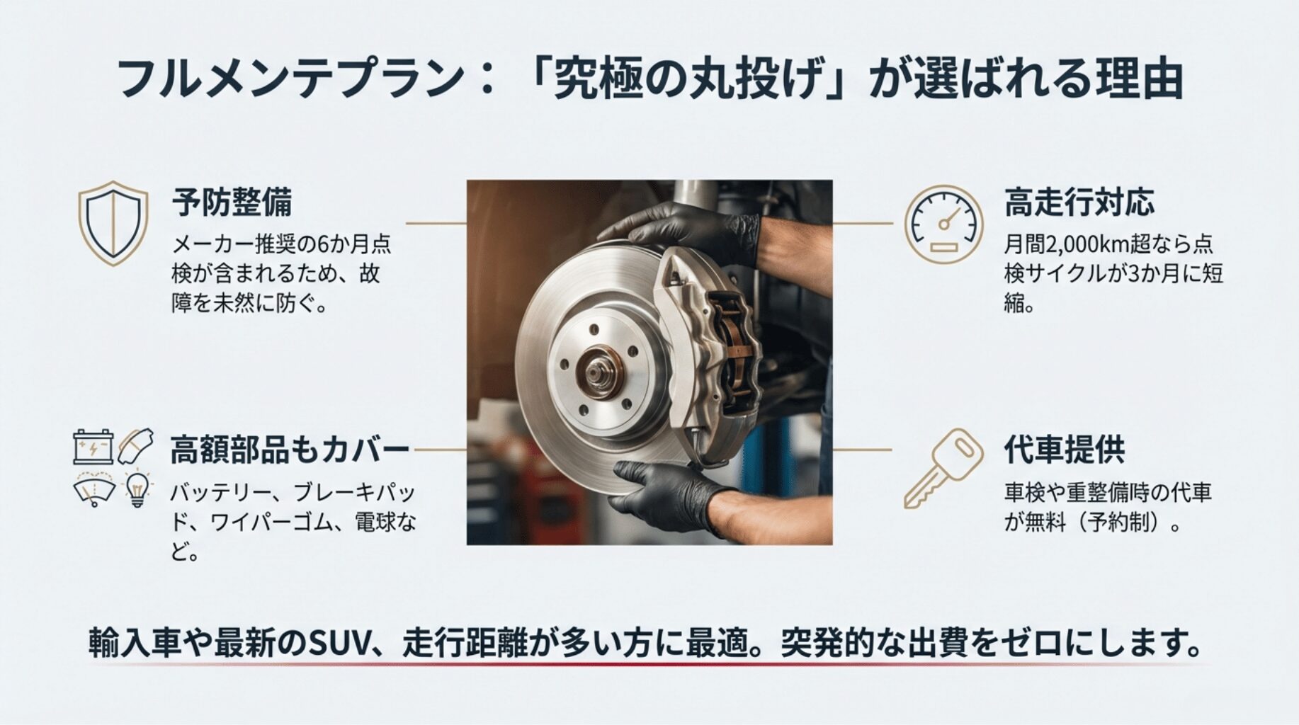 - 高走行車や輸入車ユーザーがフルメンテプランを選ぶべき経済的理由