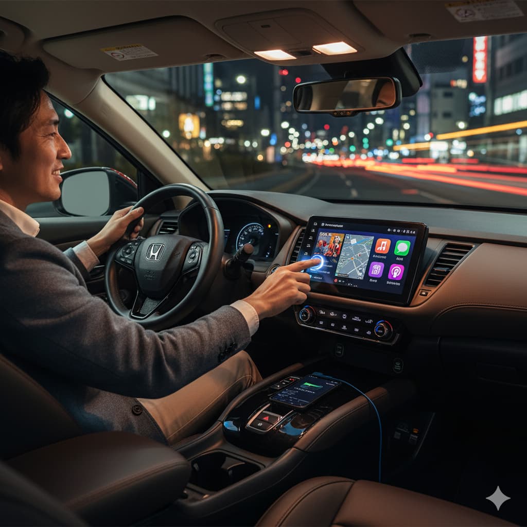 特に、先ほども触れたワイヤレス接続に対応したモデルであれば、ヴェゼルに乗り込んでエンジンをかけるだけで、あなたのスマートフォンが自動でディスプレイオーディオと連携します。ポケットやバッグからスマートフォンを取り出す必要すらありません。このストレスフリーな体験は、日々の運転をよりスマートで洗練された、そして快適な時間へと変えてくれることをお約束します。